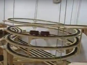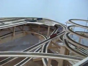 En este otro vídeo he probado el trazado de otra parte de la maqueta dejando rodar dos pequeños vagones de carga.