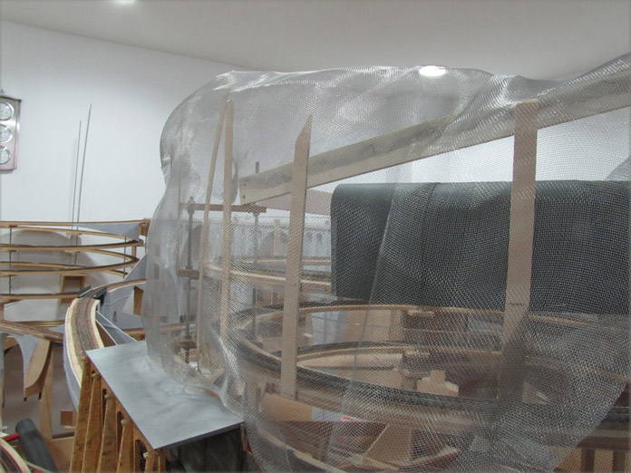 En este otro lado de la misma «montaña», he colocado la tela metálica de una sola pieza sujetándola en su interior con piezas de contrachapado y dándole la forma deseada ya que mantiene la postura bastante bien.