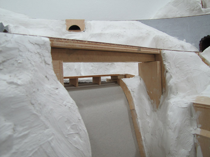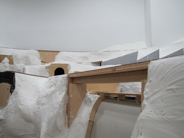 Paso inferior de la carretera y relieve hasta el muro. Falta la capa definitiva de escayola.